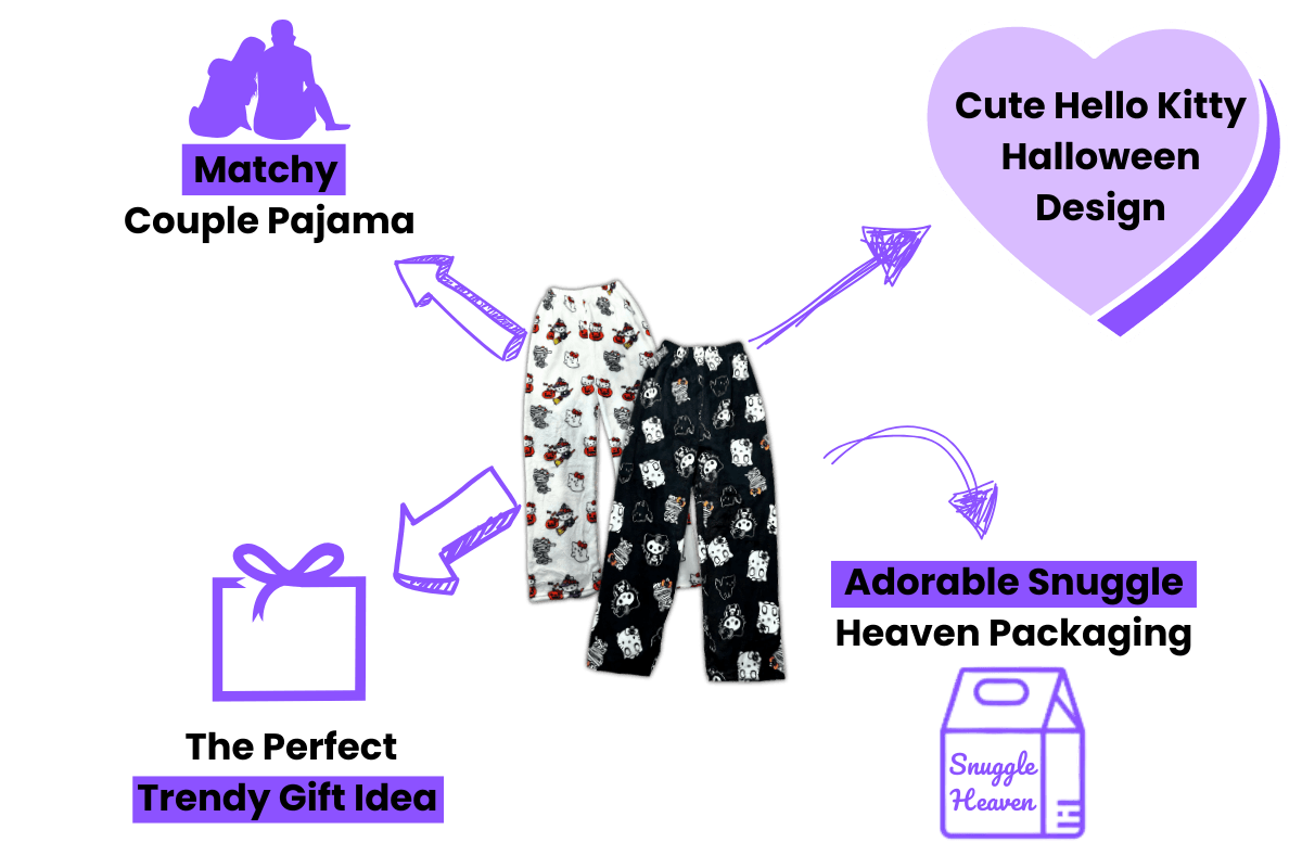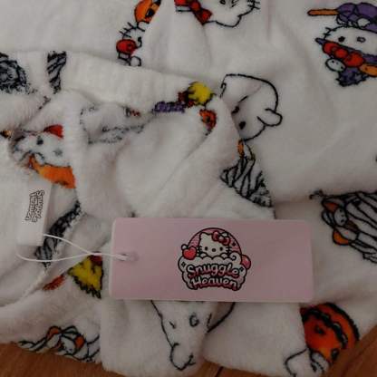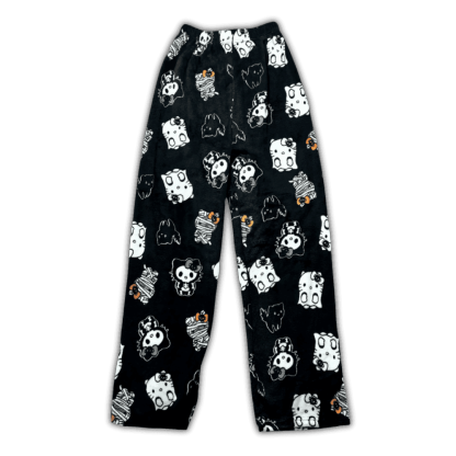 Featuring spooky-cute designs of Hello Kitty dressed as a witch, ghosts, pumpkins, and mummies, these ultra-soft fleece pants are perfect for lounging in festive style.
