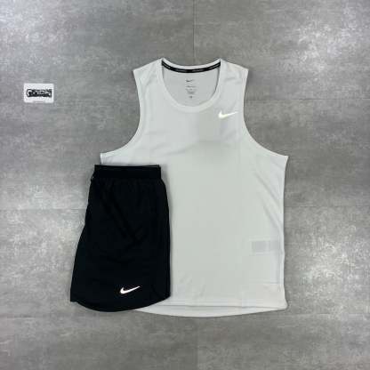 Step up your wardrobe in this men's Miler Vest from Nike. In a White colourway, this standard-fit tee is made from breathable poly fabric with Dri-FIT tech to keep away sweat and keep you cool. It features a crew neckline, short sleeves and reflective details to keep you seen after dark. With a dropped hem for extra coverage. this running vvest is finished with the signature Swoosh logo to the chest. Machine washable.
