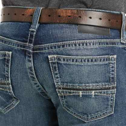 Essential Ariat Mens M7 Rocker Jeans. Western meets rocker edge in these Ariat M7 Straight Leg jeans. It features a touch of spandex that gives the right amount of stretch for a flexible, comfortable fit. Wear them with your favorite boots and tees for comfortable and casual, cowboy style.