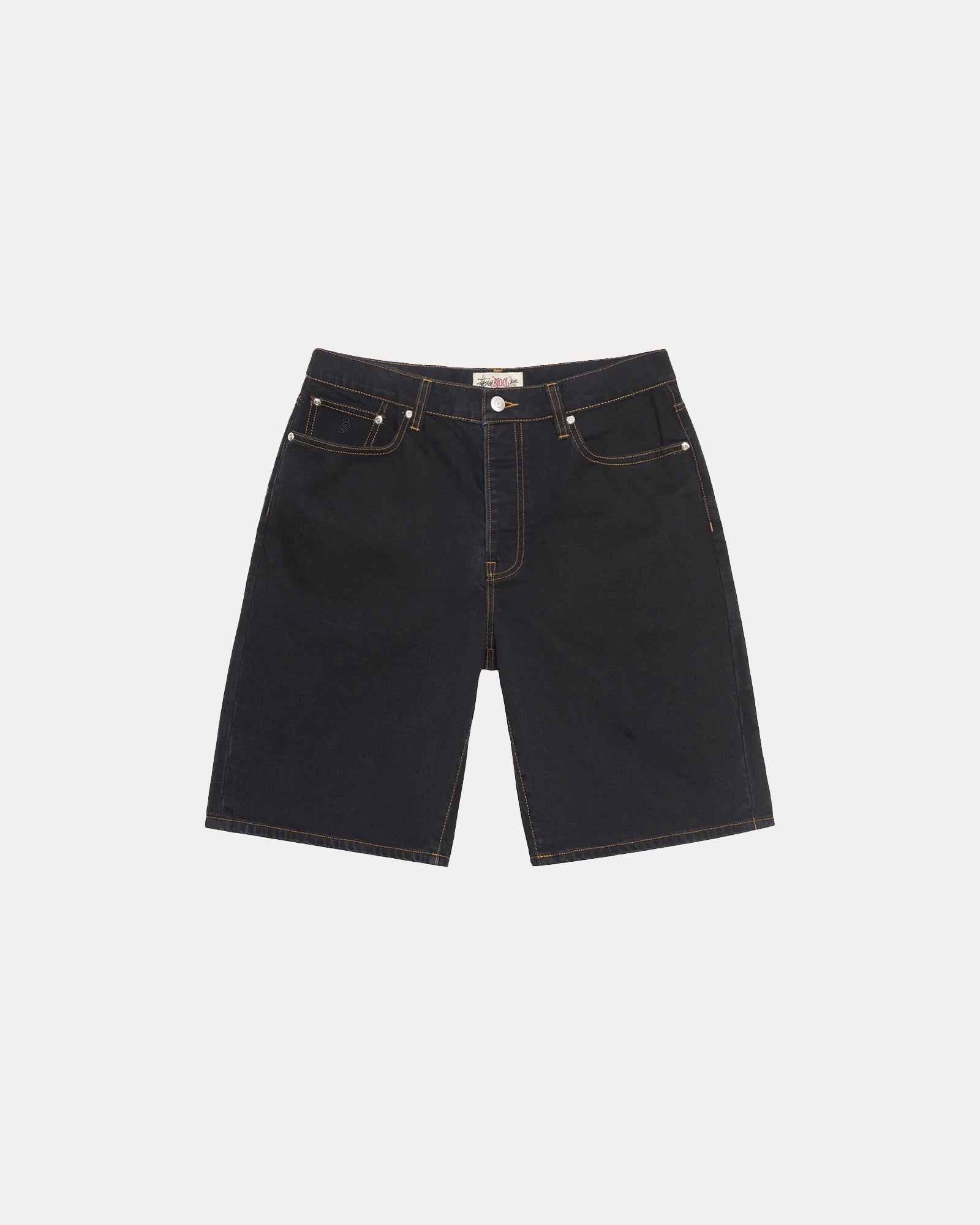 Baggy short in 14.5oz cotton denim. Oversized with an extra wide cut that’s roomy in the thigh. Features branded nickel shank hardware and a suede Stüssy logo patch. Size down for a true-to-size fit in the waist, or order your normal size for a baggier fit.