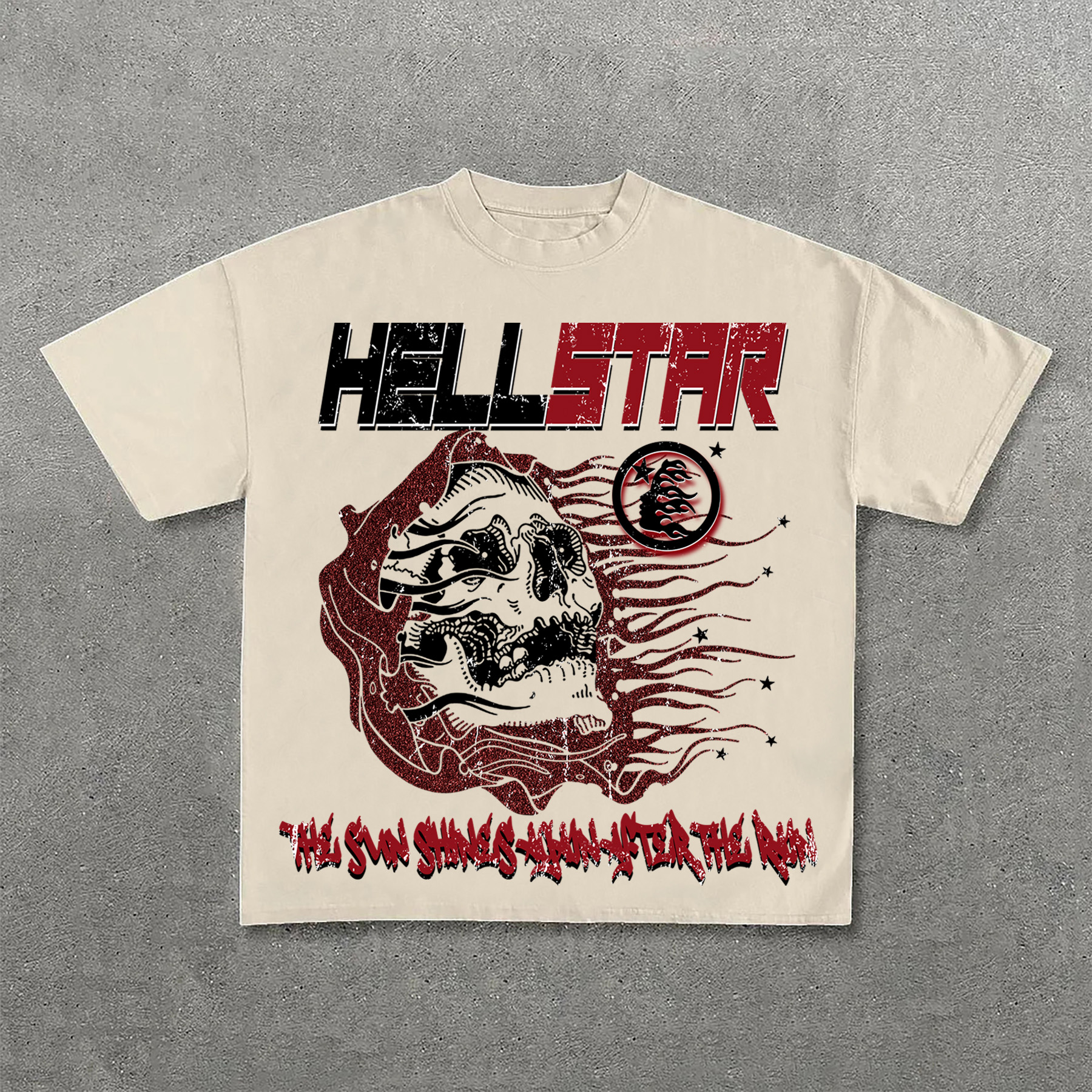 Hellstar Flame Skeleton Star Print Cotton T-Shirt