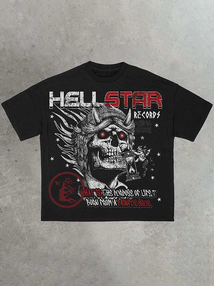 Hellstar Skull Records Vintage Cotton Short Sleeve T-Shirt