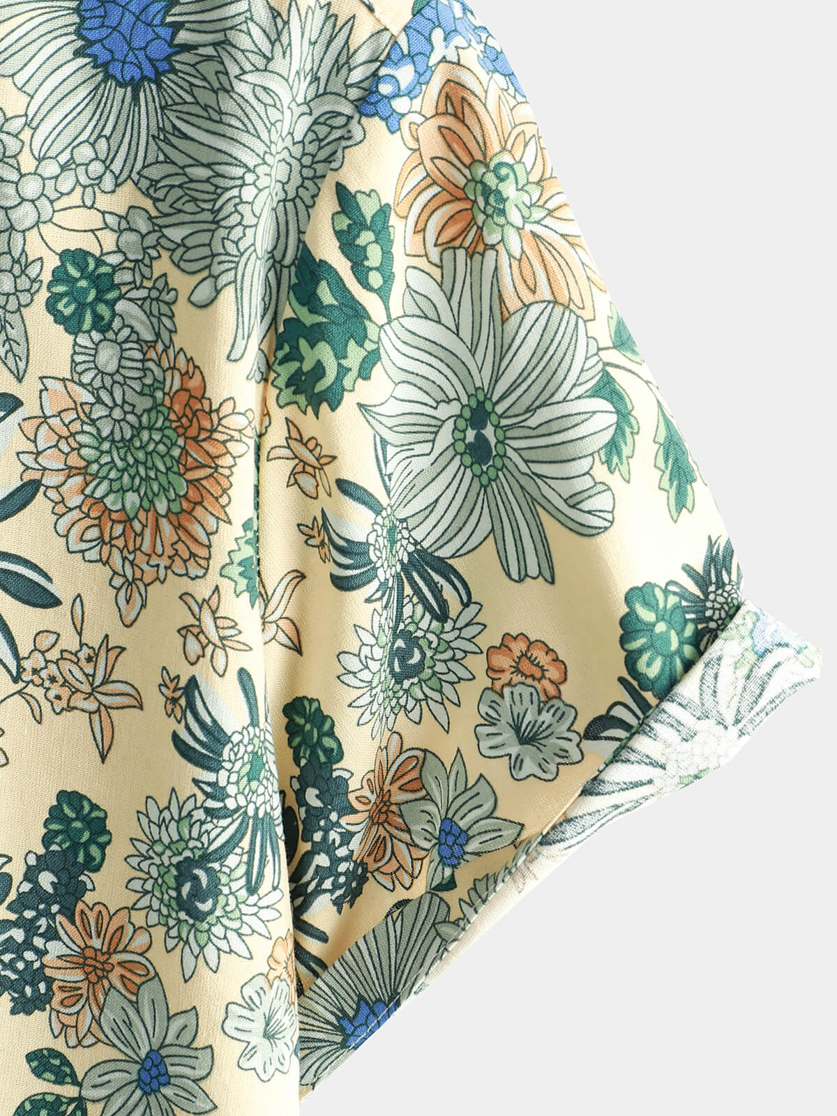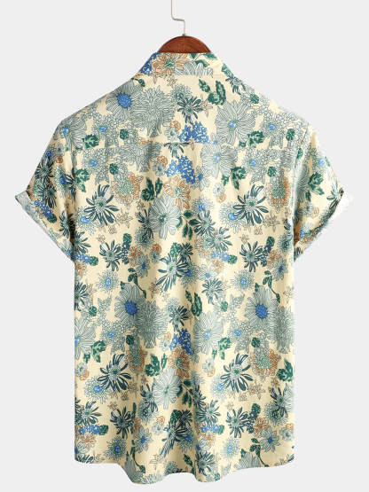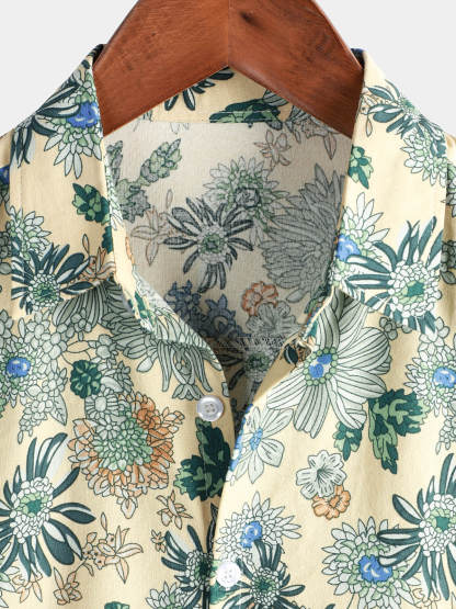 Men's Short Sleeve Vintage Green Floral Print Casual Button-Up Shirt Cool Beach