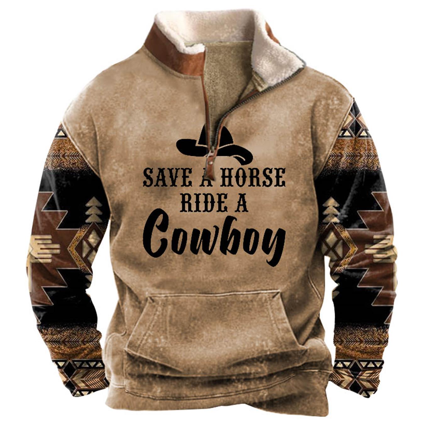 Men's Sweatshirt Quarter Zip Fleece Collar Save A Horse Ride A Cowboy Western Ethnic Aztec Vintage Daily Tops