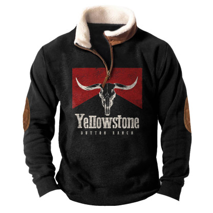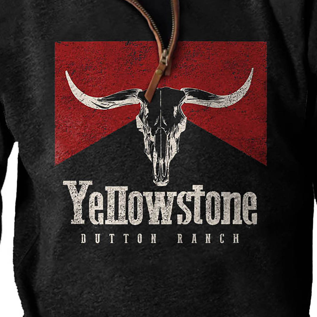 Men's Sweatshirt Yellowstone Quarter Zip Vintage Daily Tops Black
