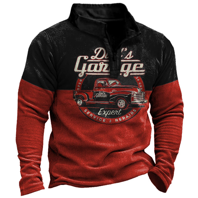 Men's Vintage Dad's Garage Print Quarter Zip Sweatshirt