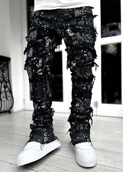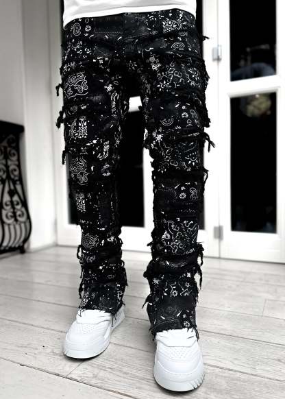 Guapi Obsidian Black Paisley Stacked Denim