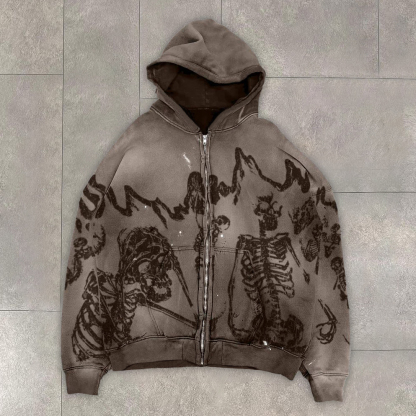 Retro Hip Hop Skull Zip Hoodie