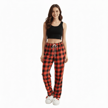 Designed with a bold red-and-black checkered pattern, these pajama pants bring a touch of retro charm and modern chill to your loungewear collection.