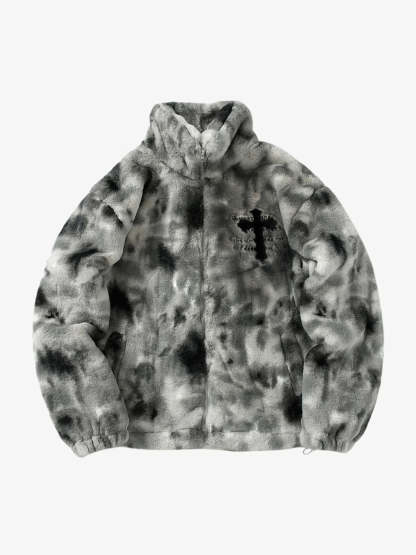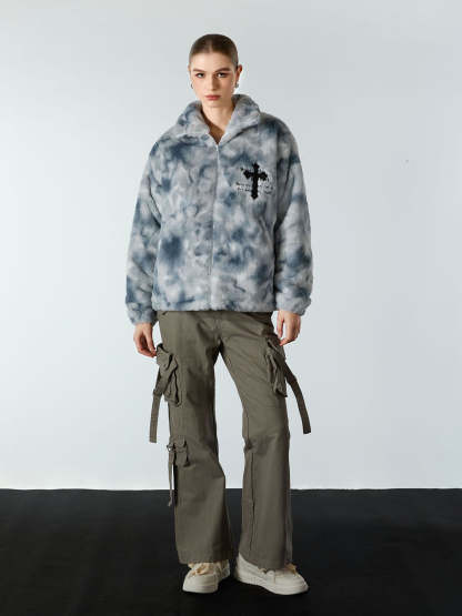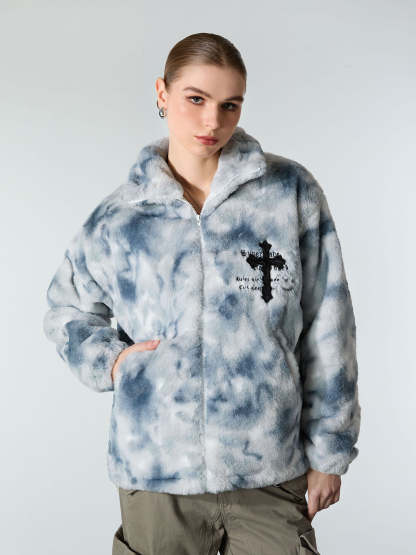 Heavy-Duty Faux Lambswool Tie-Dye Urban Jacket - 1558
