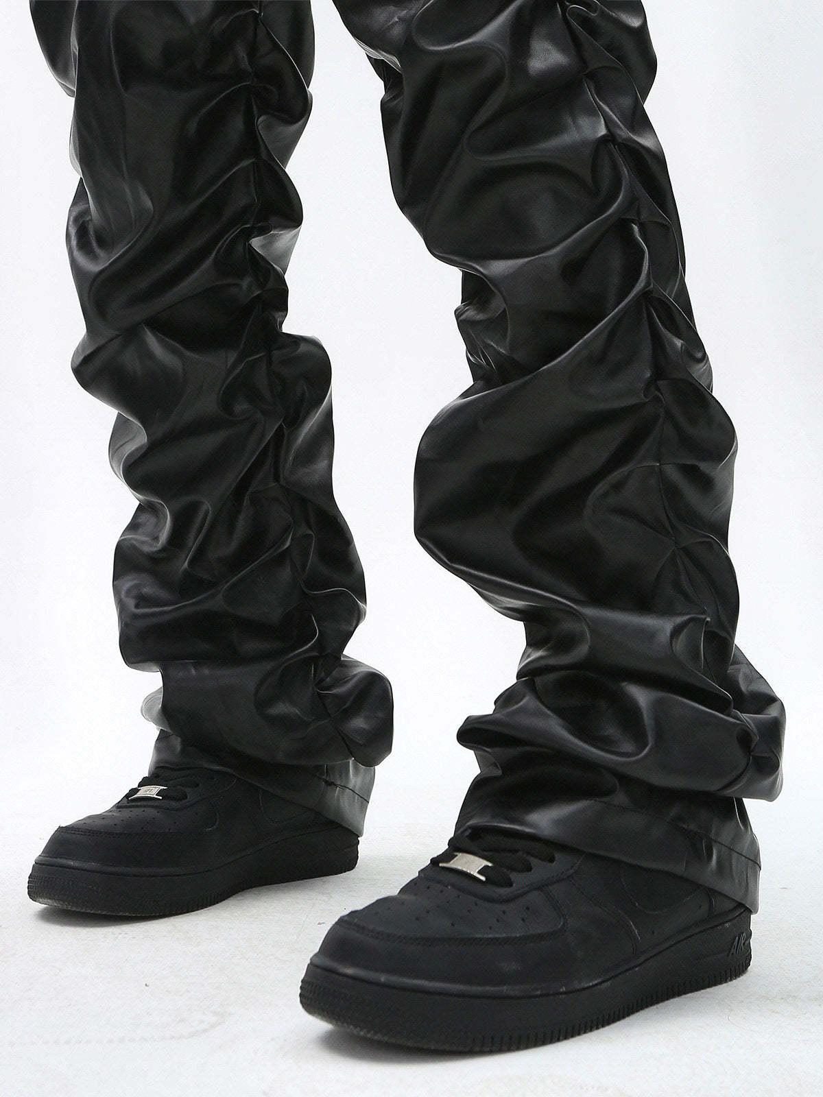 Thesupermade Punk Style Pleated Leather Pants - 2195