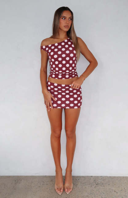 Bring the heat to your new season wardrobe with the Late Nights Mini Skirt in Burgundy Polka Dot This mini skirt is low-waisted and features stretch fabric for an easy slip on design. We love this styled with the matching Stay With You Top Burgundy Polka Dot and sandals for a fire look!