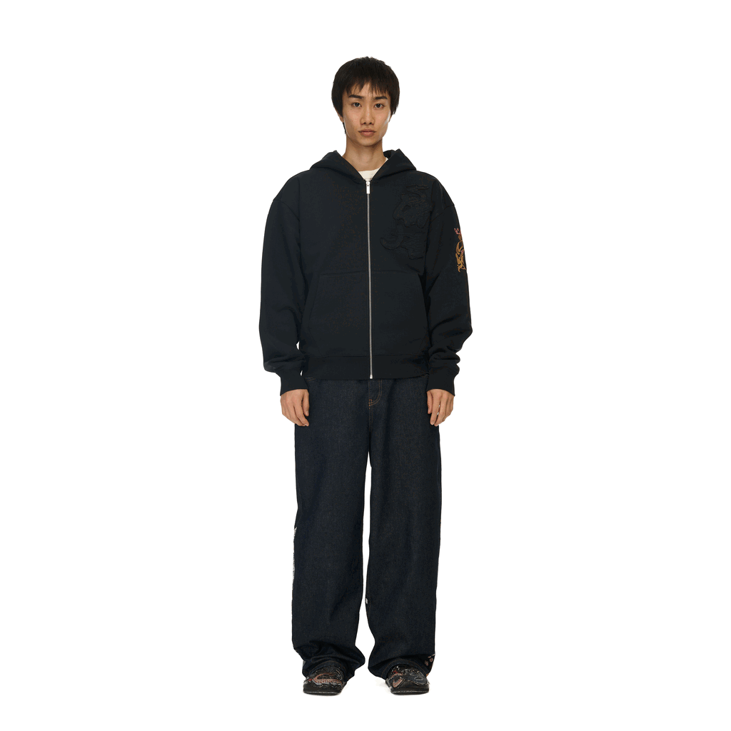 460gsm / 100% preshrunk cotton / embroidered patch on front / embroidery on back and sleeves / with double-slided YKK zipper / without cord / fits true to size